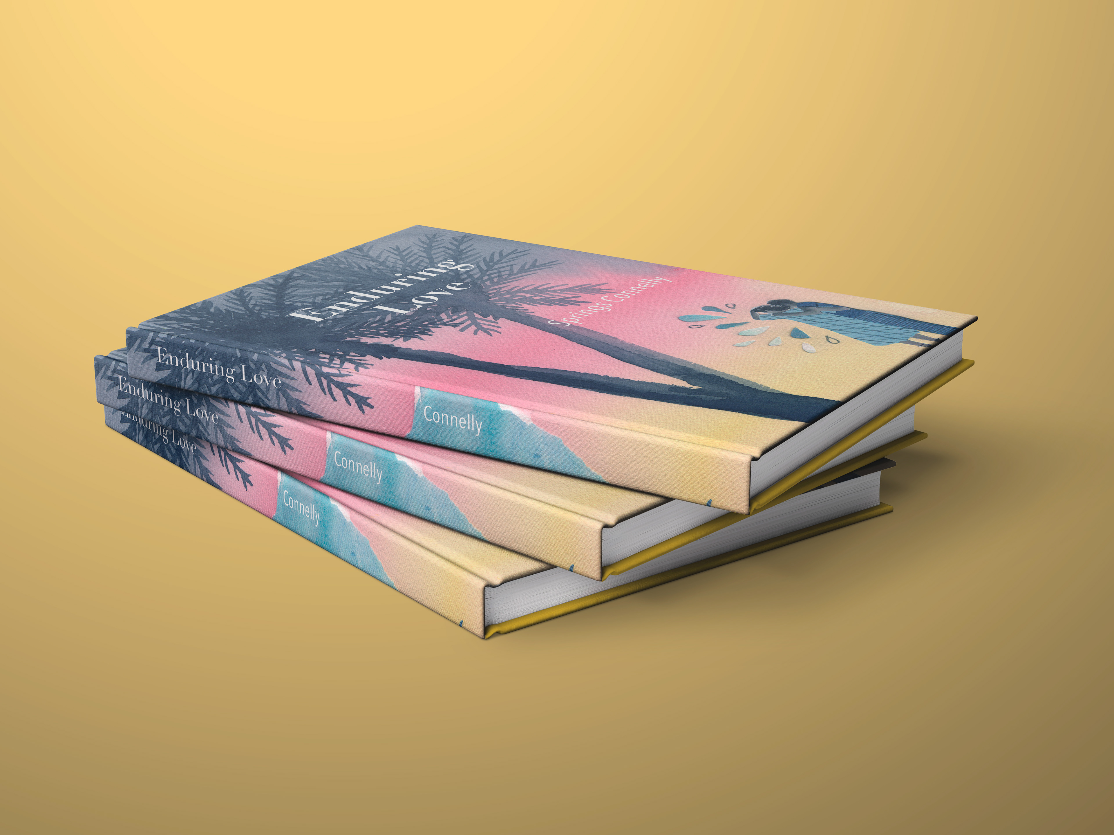 Enduring Love is a short romance novel that tells of a college romance rekindled decades later. Imagery of fishing and bodies of water is repeated throughout the book. In my jacket illustration I sought to reference this as well as the place the couple first meet, Miami, Florida.